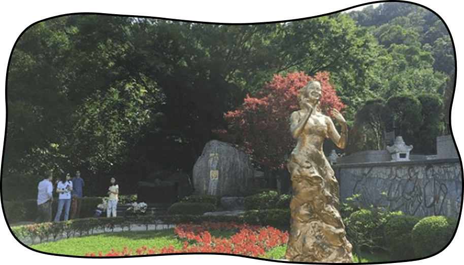 筠園內豎有一座金色的鄧麗君雕塑坐落於一片花園中,呈現出昔日鄧麗君唱歌時的神情、動作,墓園內還介紹著鄧麗君的生平故事,撥放著當年令人難忘的名曲,為藉著廣大歌迷的追 憶之情,每年總是吸引眾多遊客前往,更是大陸觀光遊客台北旅遊必去景點之一。